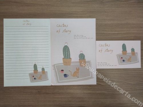 Conjunto de papel de carta importado da Suécia com 2 folhas iguais e 1 envelope, coleção Cactus of Story. Tamanho: Larg: 17 cm X Alt: 24 cm.