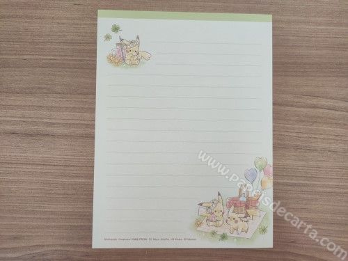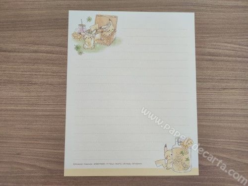 Conjunto importado, de papel de carta com 2 folhas diferentes e 1 envelope da Coleção Pikachu.