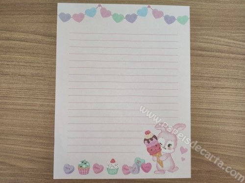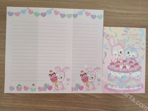 Conjunto importado, de papel de carta com 2 folhas iguais e 1 envelope. Coleção Sweets party.