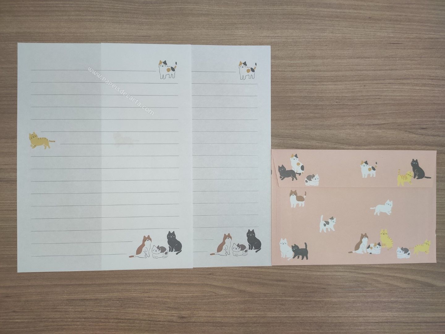 Conjunto importado, de papel de carta com 2 folhas iguais e 1 envelope.