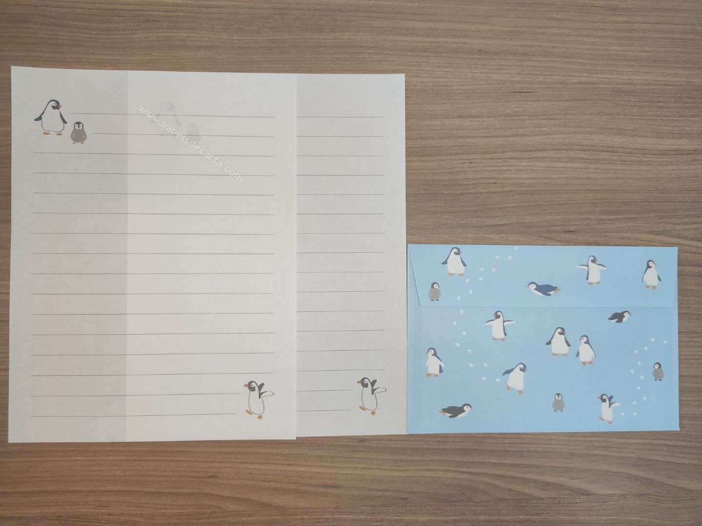 Conjunto importado, de papel de carta com 2 folhas iguais e 1 envelope.