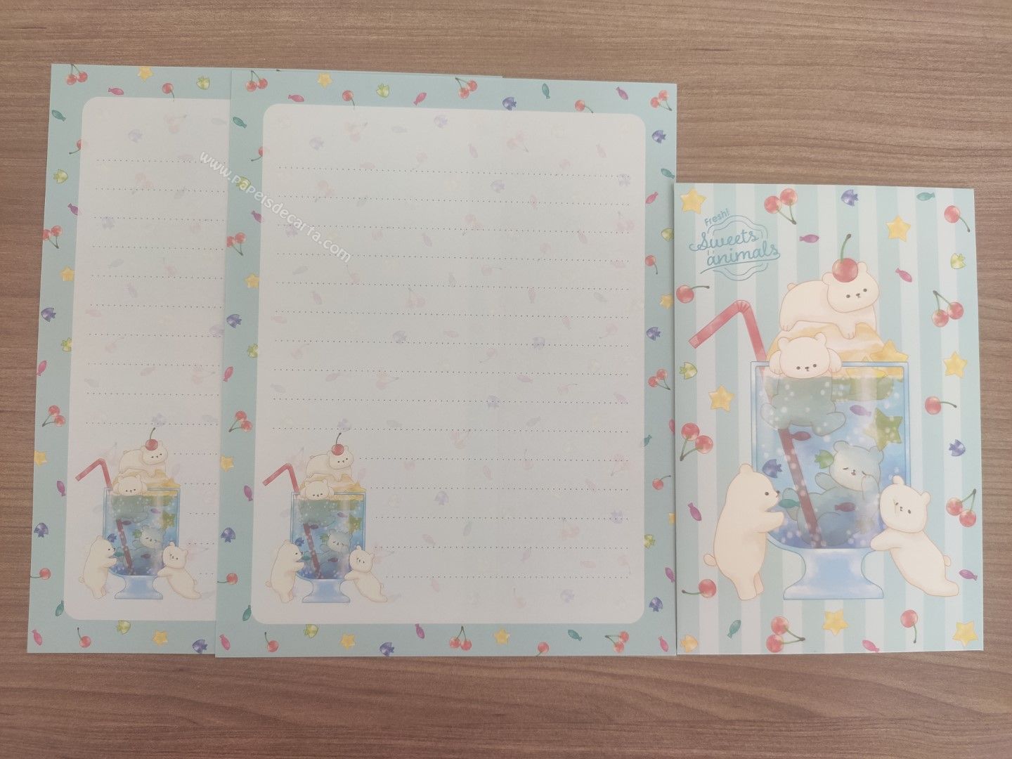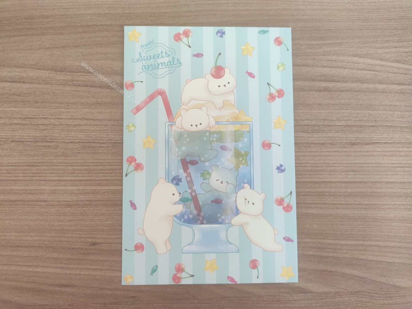 Conjunto importado, de papel de carta com 2 folhas e 1 envelope. Coleção Sweets animals.