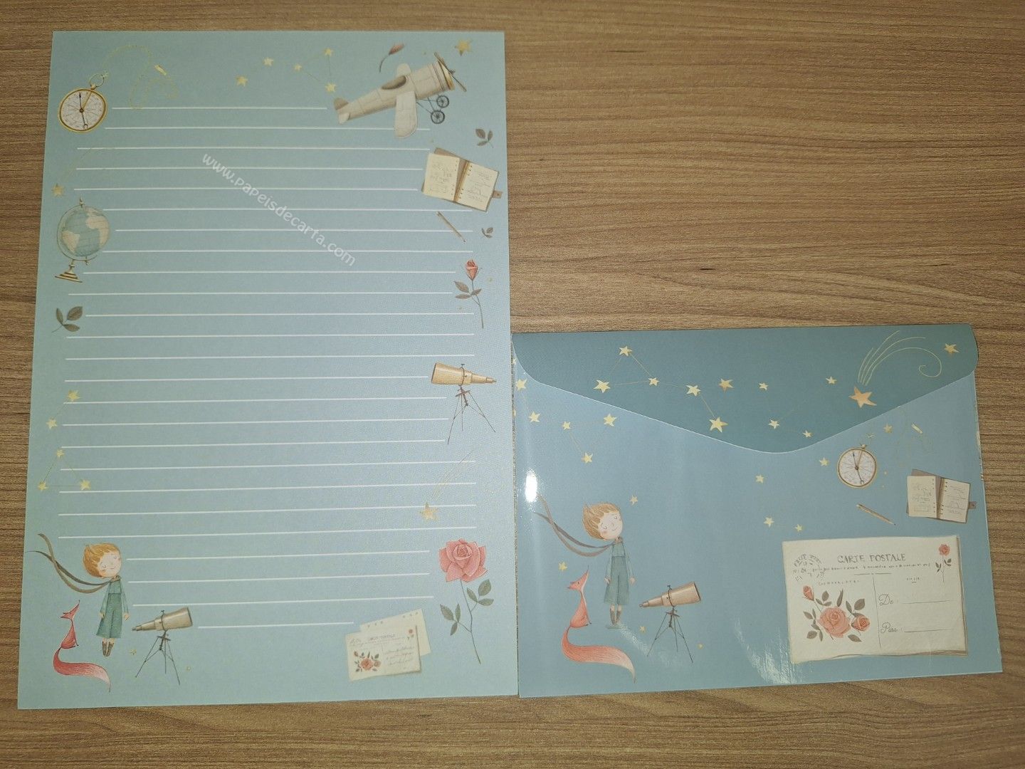 Conjunto de papel de carta com 1 folha e 1 envelope, da coleção La Palomita.