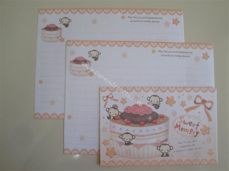 Conjunto importado, de papel de carta com 2 folhas iguais e 1 envelope do Sweet Memory.
