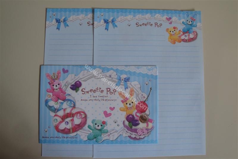 Conjunto importado, de papel de carta com 2 folhas iguais e 1 envelope do Sweetie Pop.