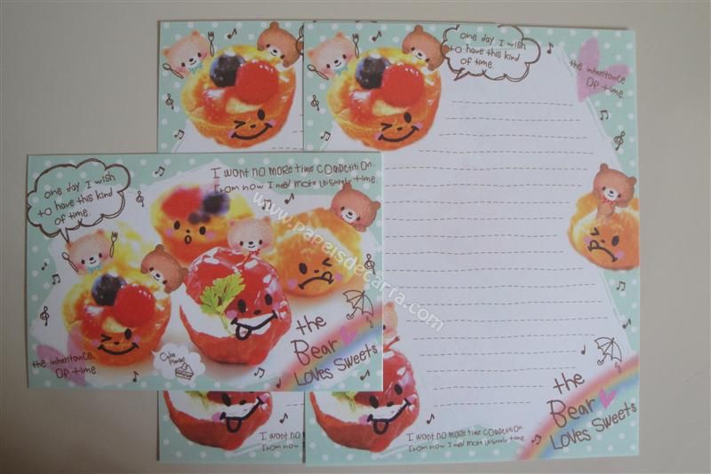 Conjunto com 2 folhas e 1 envelope do The Bear Loves Sweets 03
