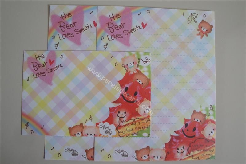 Conjunto com 2 folhas e 1 envelope do The Bear Loves Sweets 04