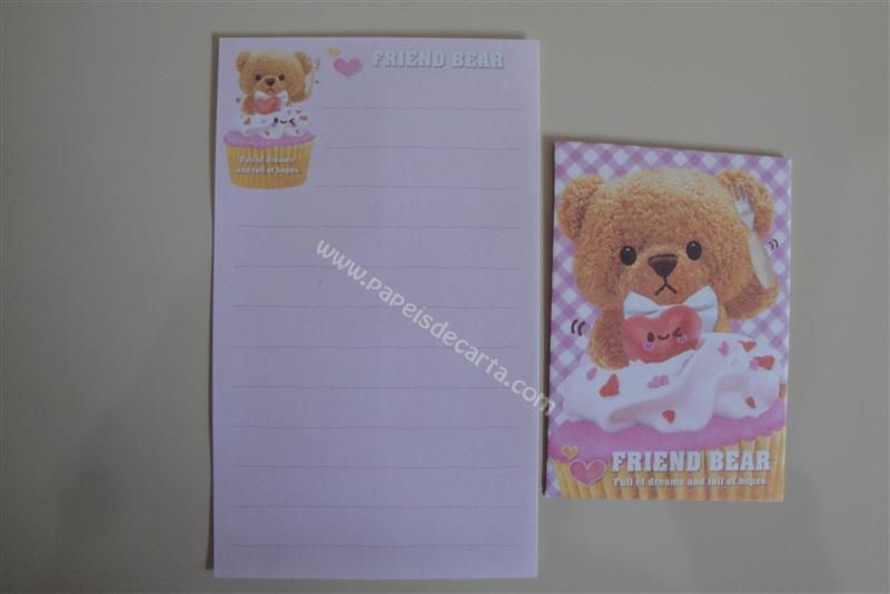 Conjunto importado, de papel de carta com 1 folha pequena e 1 envelope do Friend Bear.