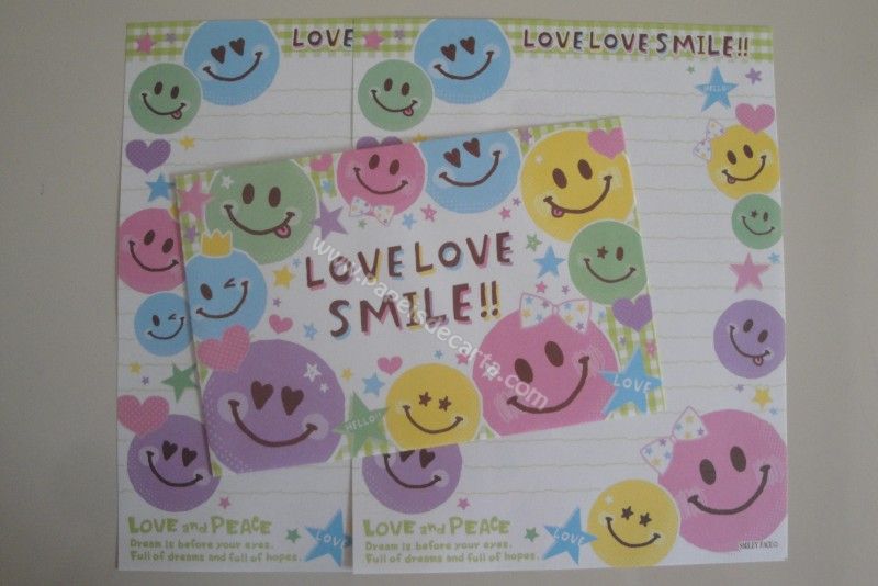Conjunto importado, de papel de carta com 2 folhas iguais e 1 envelope do Love Love Smile.