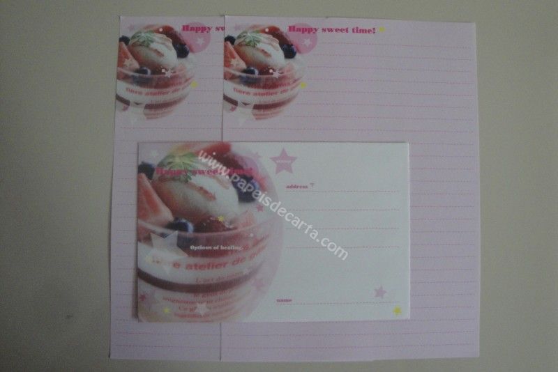 Conjunto importado, de papel de carta com 2 folhas iguais e 1 envelope do Happy Sweet Time.