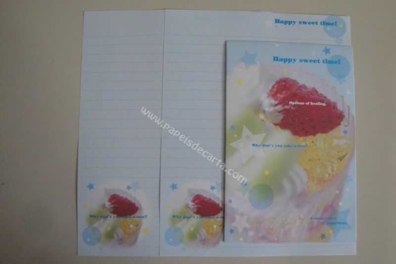 Conjunto importado, de papel de carta com 2 folhas iguais e 1 envelope do Happy Sweet Time.