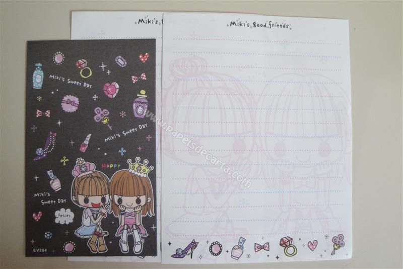 Conjunto importado, de papel de carta com 2 folhas iguais e 1 envelope da Mikis Friends.