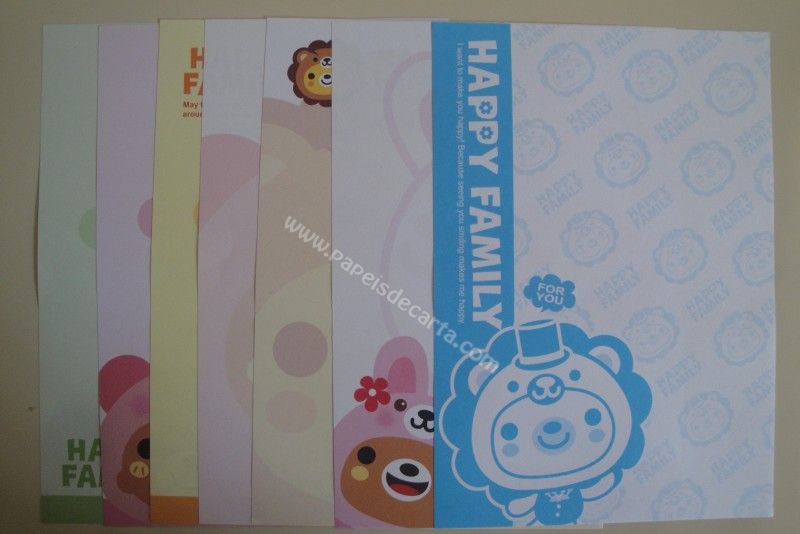 Conjunto importado, de papel de carta com 7 folhas diferentes do Happy Family.