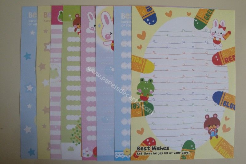 Conjunto importado, de papel de carta com 8 folhas diferentes do Best Wishes.