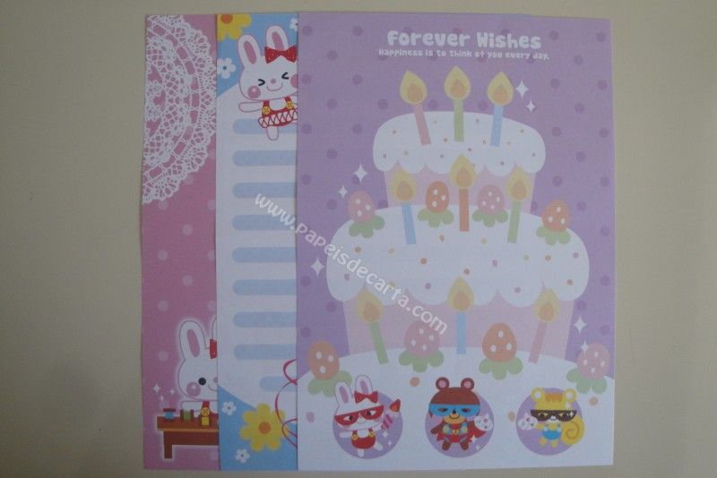 Conjunto importado, de papel de carta com 3 folhas diferentes importadas.