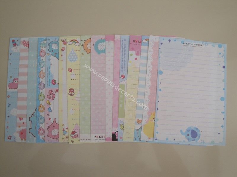 Conjunto importado, de papel de carta com 16 folhas diferentes do My Little Friends.