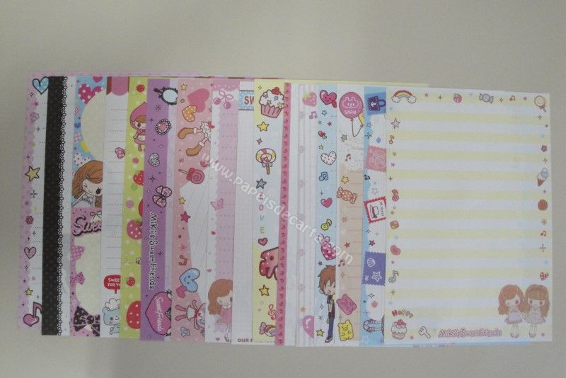 Conjunto importado, de papel de carta com 16 folhas diferentes da Mikis Friends.