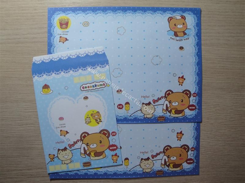 Conjunto importado, de papel de carta com 2 folhas iguais e 1 envelope do Cocoakuma.