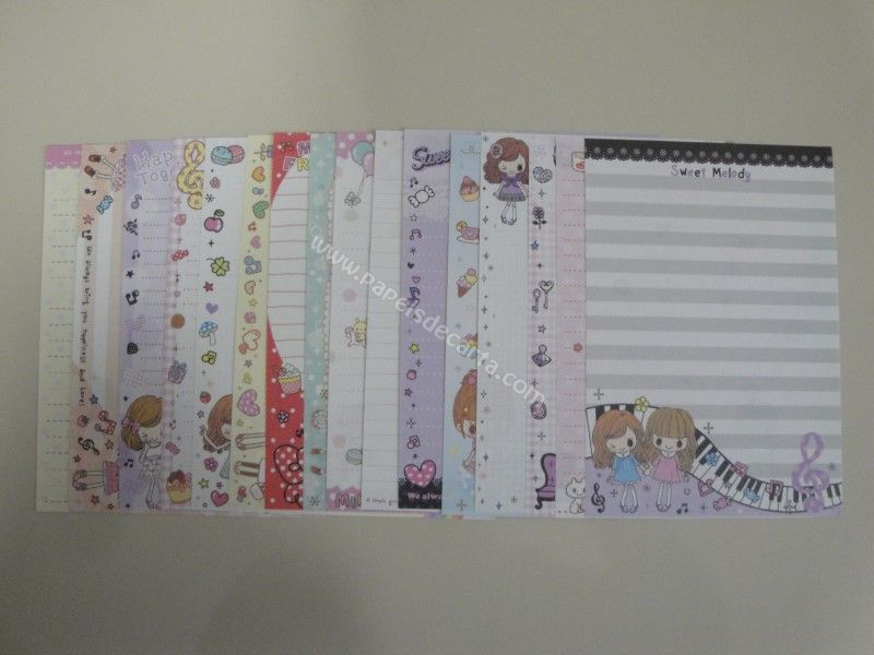 Conjunto importado, de papel de carta com 16 folhas diferentes da Mikis Fairy Tale.