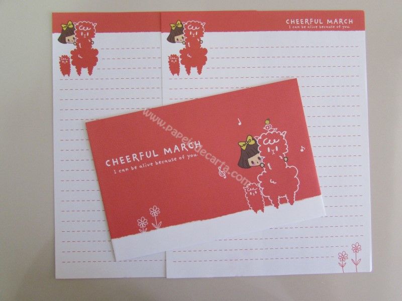 Conjunto importado, de papel de carta com 2 folhas iguais e 1 envelope da coleção Cheerful March. Cor: Vermelho.