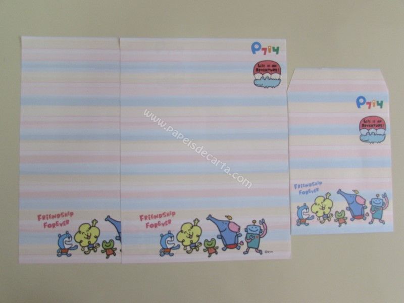 Conjunto importado, de papel de carta com 2 folhas iguais e 1 envelope da coleção P7I4. Frase: Friendship Forever