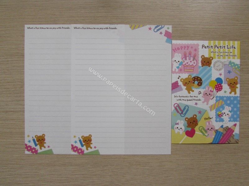 Conjunto importado, de papel de carta com 2 folhas iguais e 1 envelope da coleção Petit Petit Life. Código: 38078. Fabricante: Mind Wave