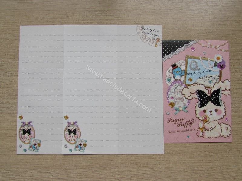 Conjunto importado, de papel de carta com 2 folhas iguais e 1 envelope da coleção Sugar Puffy Antique. Código: 38077. Fabricante: Mind Wave