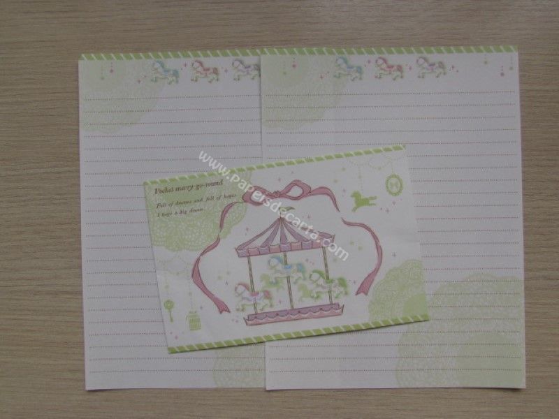 Conjunto importado, de papel de carta com 2 folhas iguais e 1 envelope da coleção Pocket merry-go-round.