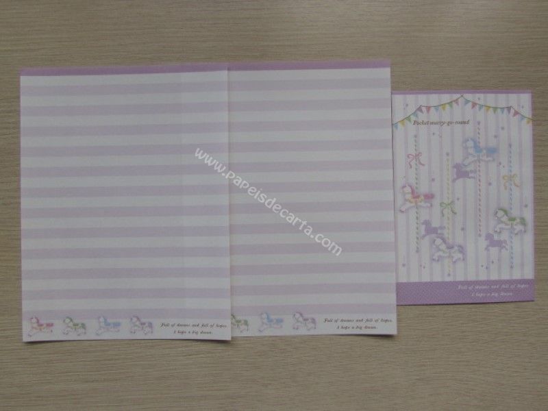 Conjunto importado, de papel de carta com 2 folhas iguais e 1 envelope da coleção Pocket merry-go-round.