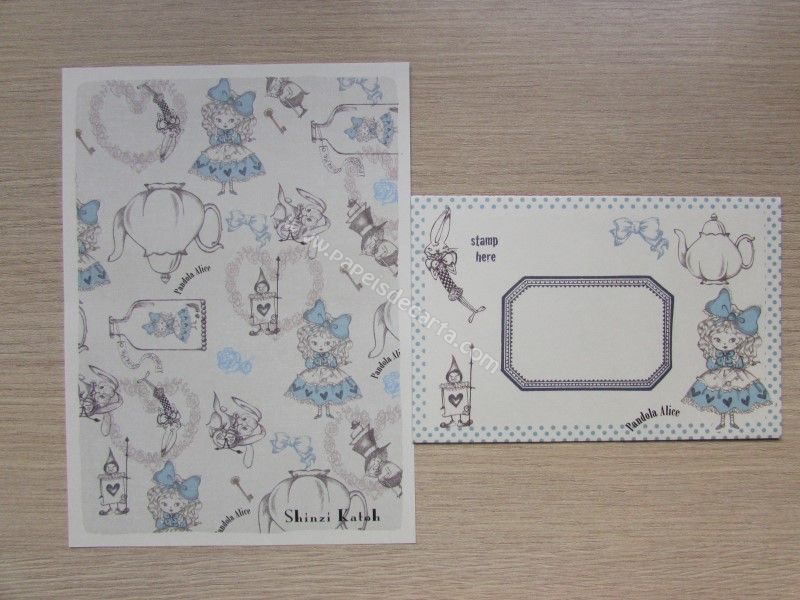 Conjunto importado, de papel de carta com 1 folha e 1 envelope do Shinzi Katoh - Pandola Alice.