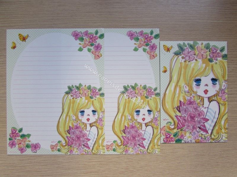 Conjunto importado, de papel de carta com 2 folhas iguais e 1 envelope da coleção Ado Mizumori. Modelo: Fabricante: Sun-Star