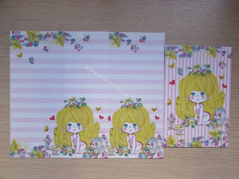 Conjunto importado, de papel de carta com 2 folhas iguais e 1 envelope da coleção Ado Mizumori. Modelo: Fabricante: Sun-Star