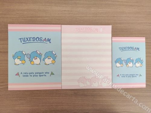 Conjunto importado, de papel de carta com 2 folhas e 1 envelope do Tuxedo Sam, da Sanrio.