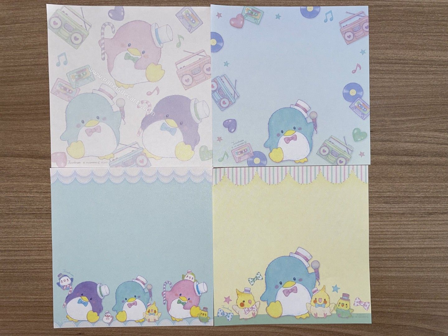 Lote de papel de carta importado, tamanho pequeno, do Tuxedosam, com 4 folhas diferentes. Tamanho: 10cm X 10cm.