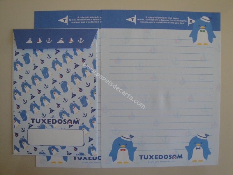 Conjunto importado, de papel de carta com 2 folhas iguais e 1 envelope do Texudo Sam, da Sanrio.