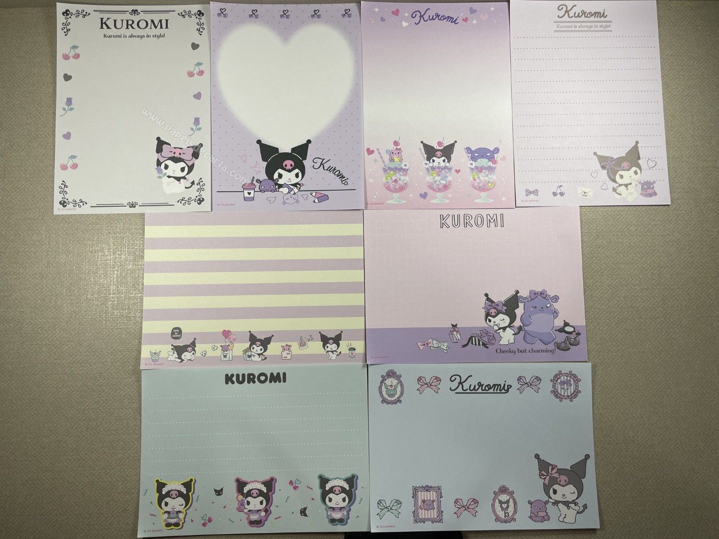 Lote importado de papel de carta, tamanho pequeno da Kuromi, da Sanrio. São 8 modelos diferentes. Tamanho: Larg: 10,5cm x alt: 15cm.