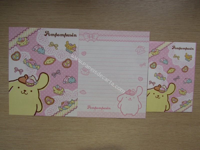 Conjunto com 2 folhas e 1 envelope do Pompompurin 02