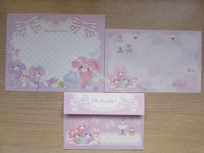 Conjunto importado, de papel de carta do Bonbonribbon, da Sanrio, com 2 folhas diferentes, 1 notinha e 1 envelope. Fabricante: Sanrio
