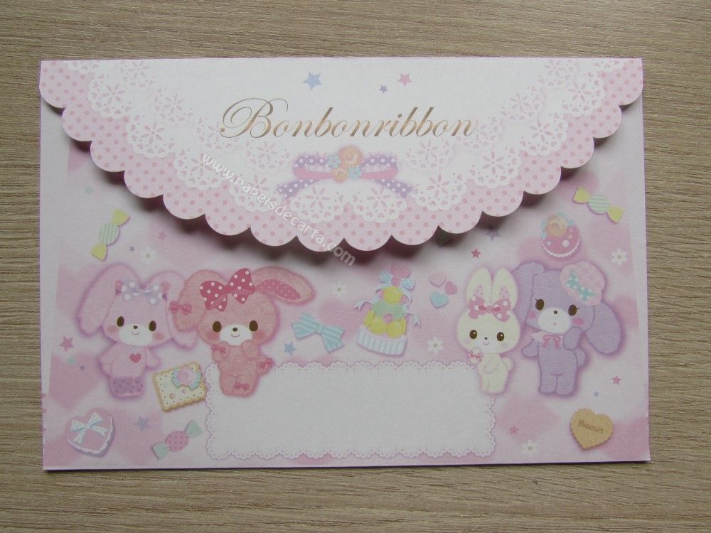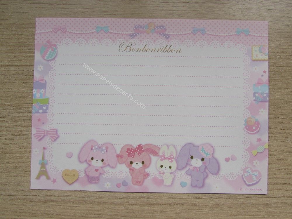 Conjunto importado, de papel de carta do Bonbonribbon, da Sanrio, com 1 folha, 1 notinha e 1 envelope. Tamanho médio. Fabricante: Sanrio