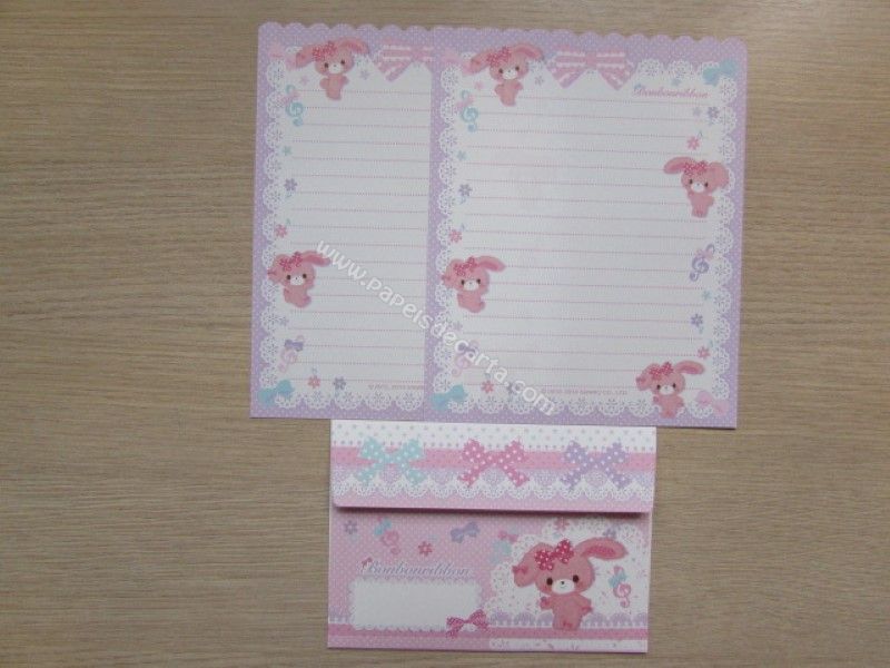 Conjunto importado, de papel de carta do Bonbonribbon, da Sanrio, com 2 folhas iguais e 1 envelope. Fabricante: Sanrio