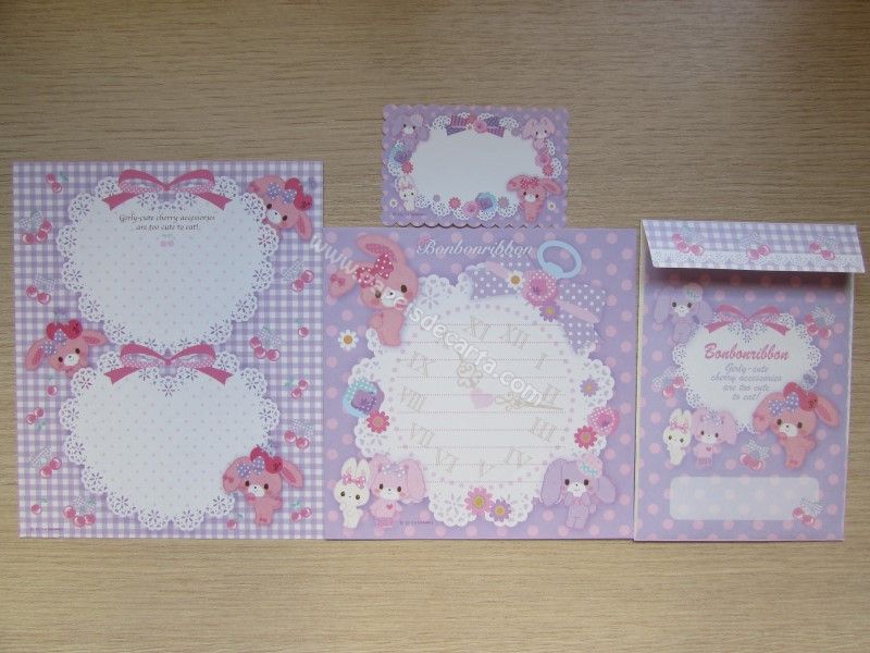 Conjunto importado, de papel de carta do Bonbonribbon, da Sanrio, com 2 folhas diferentes, 1 notinha e 1 envelope. Fabricante: Sanrio