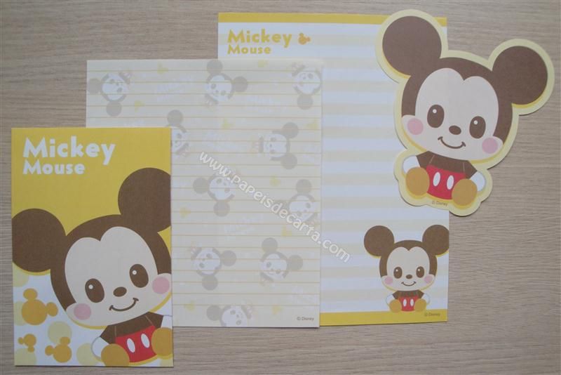 Conjunto importado, de papel de carta com 2 folhas diferentes, 1 notinha e 1 envelope do Mickey.
