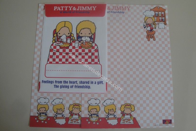 Conjunto importado, de papel de carta com 2 folhas iguais e 1 envelope da Patty & Jimmy, da Sanrio.