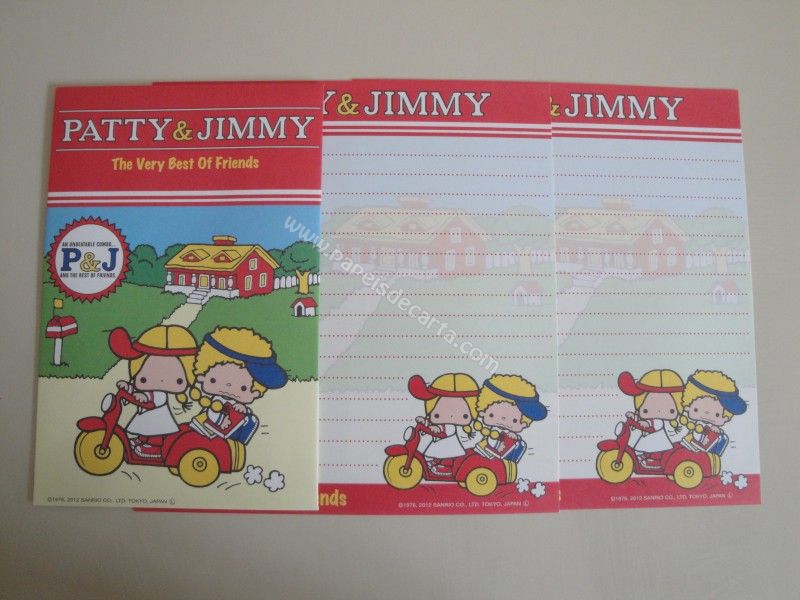 Conjunto importado, de papel de carta com 2 folhas iguais e 1 envelope da Patty & Jimmy, da Sanrio.