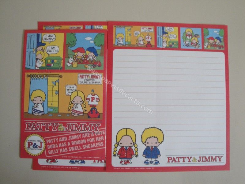 Conjunto importado, de papel de carta com 2 folhas iguais e 1 envelope da Patty & Jimmy, da Sanrio.