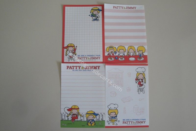 Conjunto importado, de papel de carta com 4 notinhas diferentes da Patty and Jimmy, da Sanrio.
