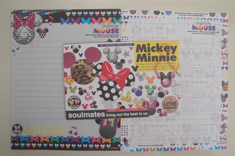 Conjunto importado, de papel de carta com 2 folhas diferentes e 1 envelope da Minnie.