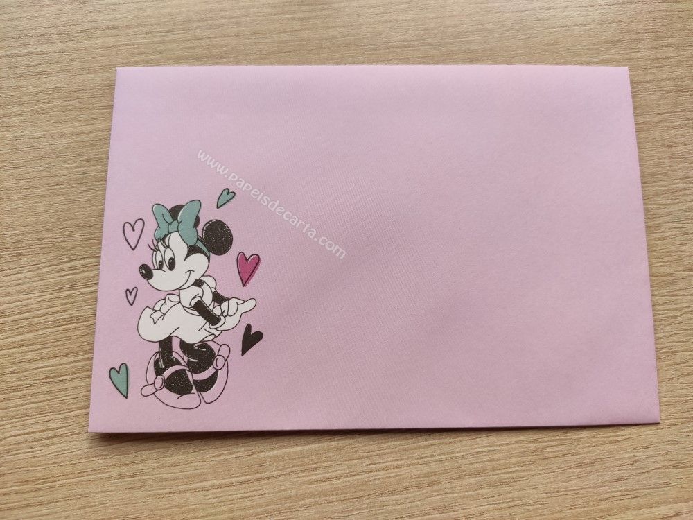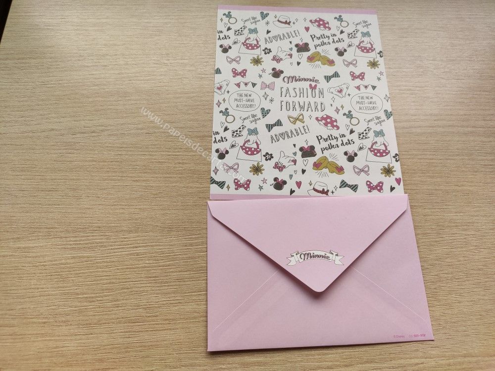 Conjunto importado, de papel de carta da Minnie, com 1 folha, e 1 envelope, da Disney.