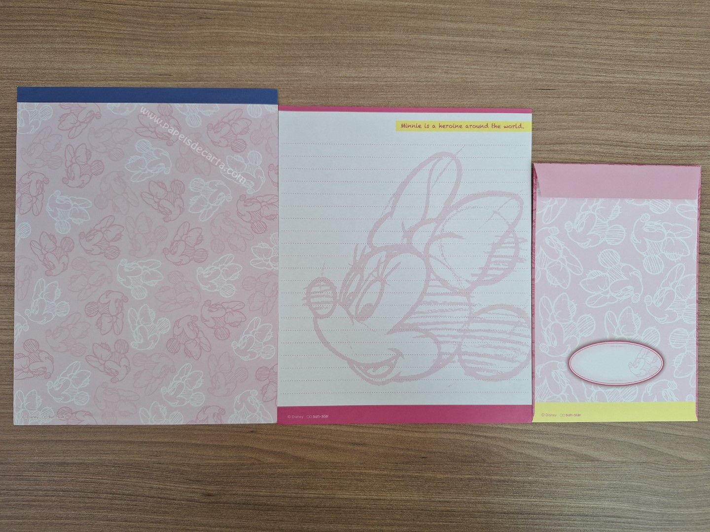 Conjunto importado, de papel de carta da Minnie, com 2 folhas e 1 envelope, da Disney.