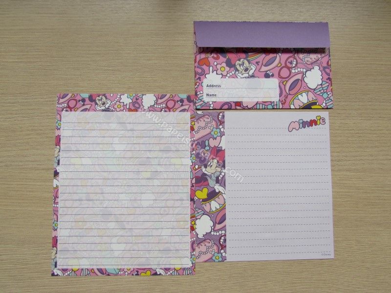 Conjunto importado, de papel de carta da Minnie, com 2 folhas diferentes e 1 envelope, da Disney. Fabricante: Sun-Star